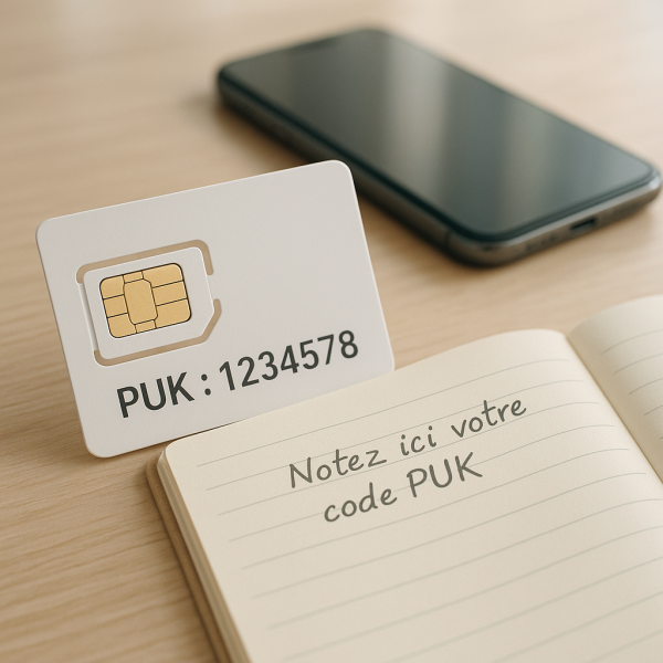 Écrivez votre code PIN et code PUK dans un endroit sécurisé, comme un carnet personnel utilisé exclusivement pour vos informations de sécurité. Évitez de les stocker sur votre téléphone ou ordinateur sans protection.